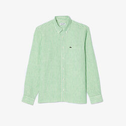 قميص كتان مخطط بقصّة عادية