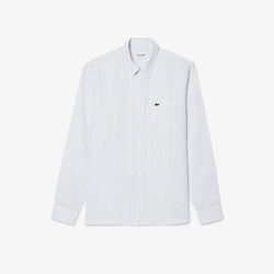 قميص كتان مخطط بقصّة عادية