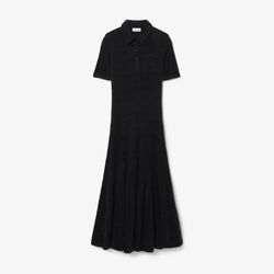 Fuzzy Ribbed Knit Polo Collar Dress